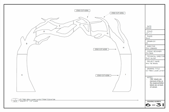 - drafting for the proscenium tree arch, US tree arch, SR & SL trees, & C flying tree flats